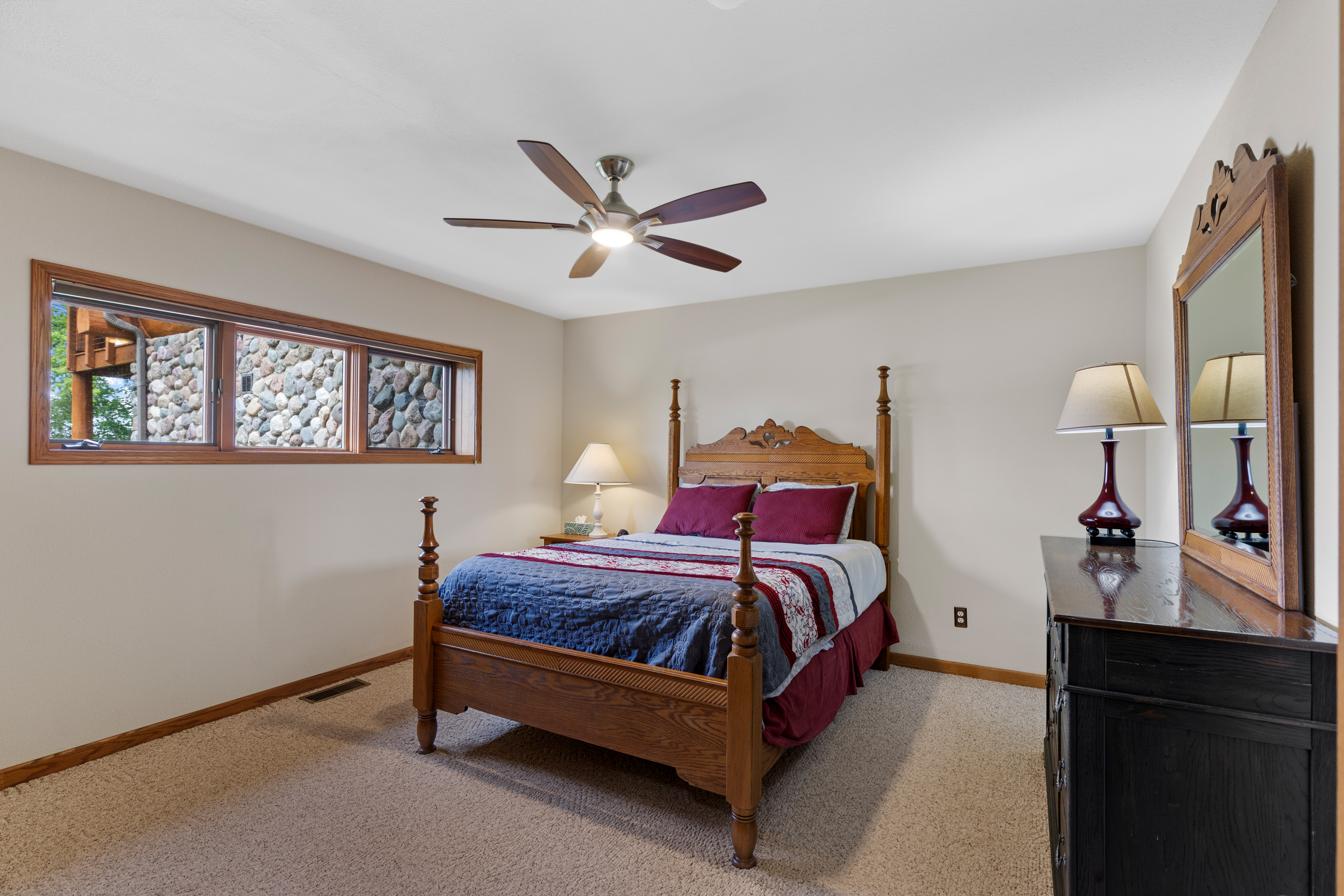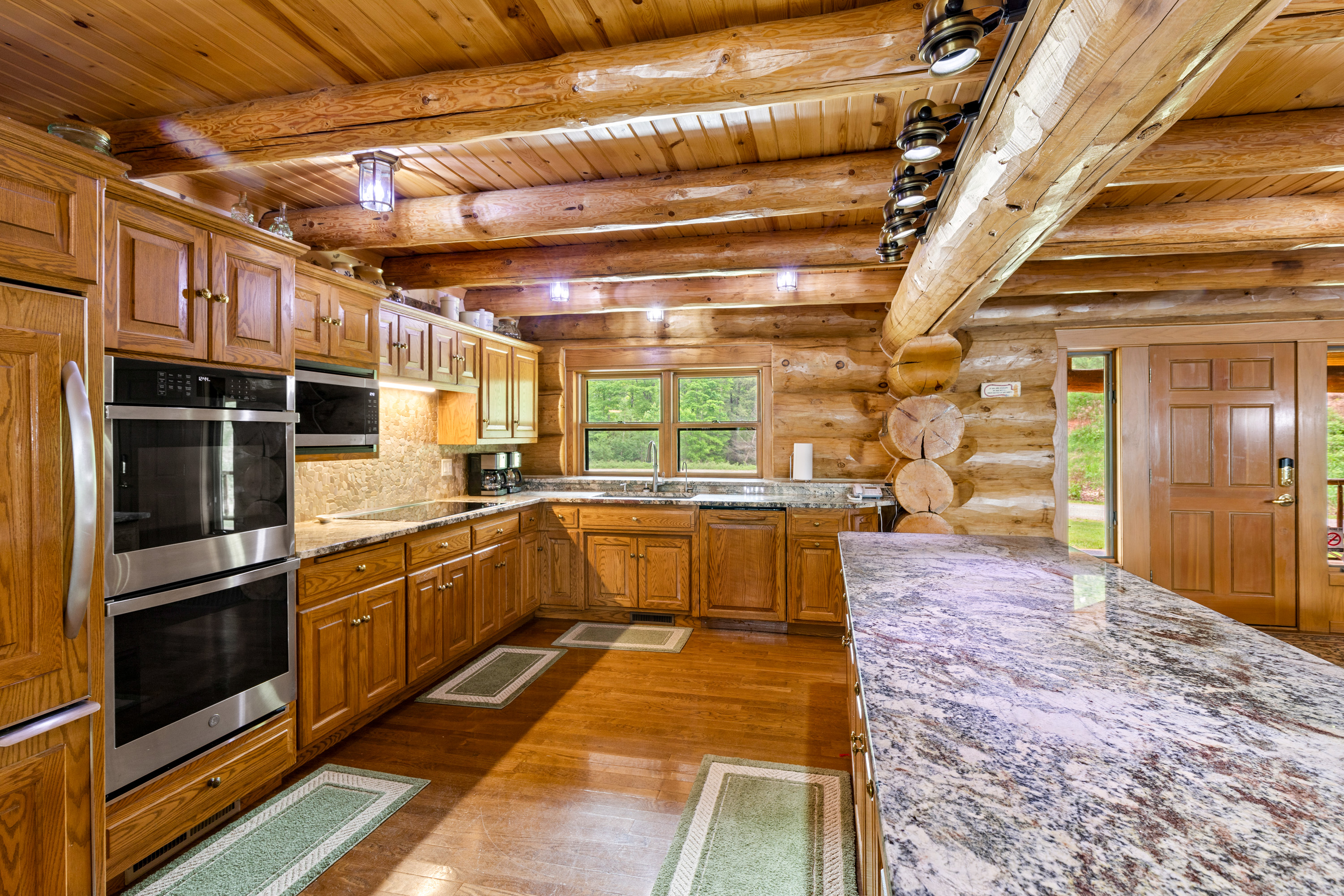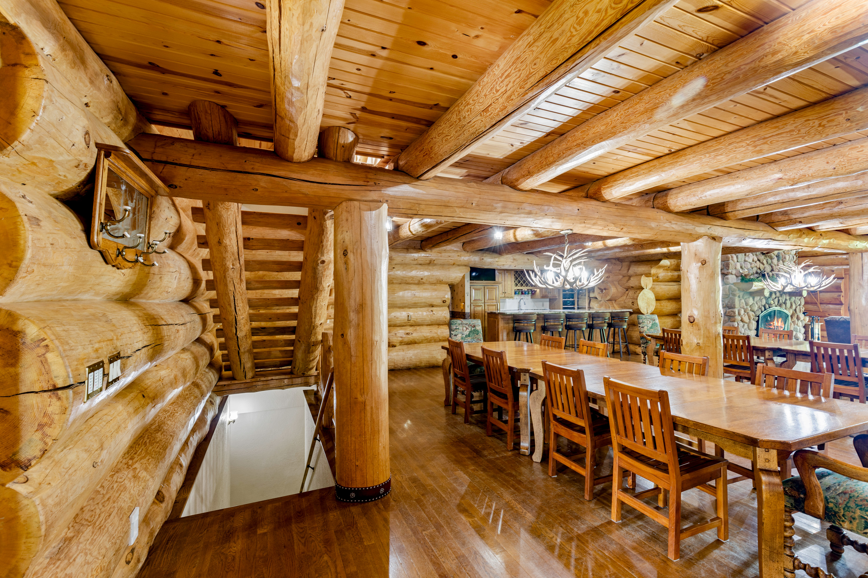 The property originally had several outbuildings and a very large main structure. That structure burned down in the eighties. At that time the property was owned by a business family from the Antigo area. Eventually plans were drawn up to replace the structures with a new main building to be used by the extended family, and for entertaining customers of the business and off-site meetings. There is seating for 20 people in the dining room, with more in the breakfast nook, it was meant to be a comfortable place for larger groups, but it also feels cozy for smaller more intimate get togethers.